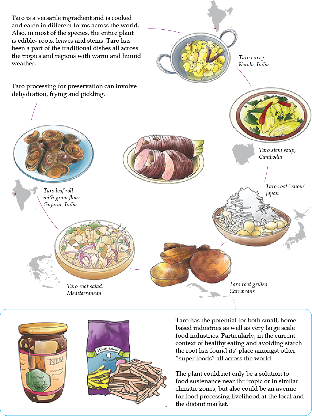 Business possibilities based on local food systems: A simple staple local food like taro offers wonderful opportunities for home-based, small and midsize enterprises (SMEs) that can address local food security and resilience and create opportunities for value addition and growth of gender-sensitive enterprises.