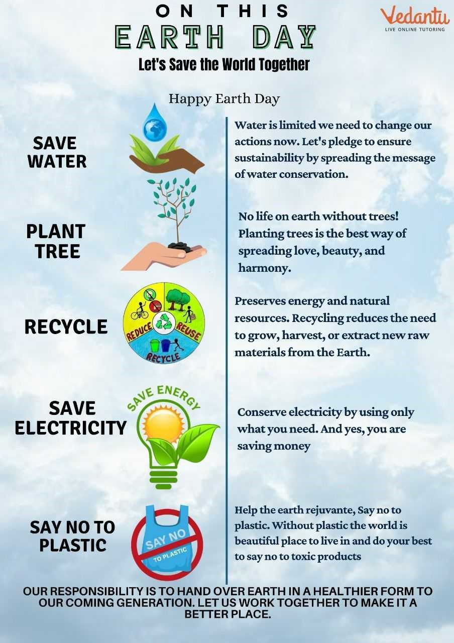 Earth Day is 22 April of each year. Do not wait for 22 April in order to clean and conserve your human habitats — that is, the place where you live. The infographic below shows five ways you can conserve and protect Earth every day of the year.